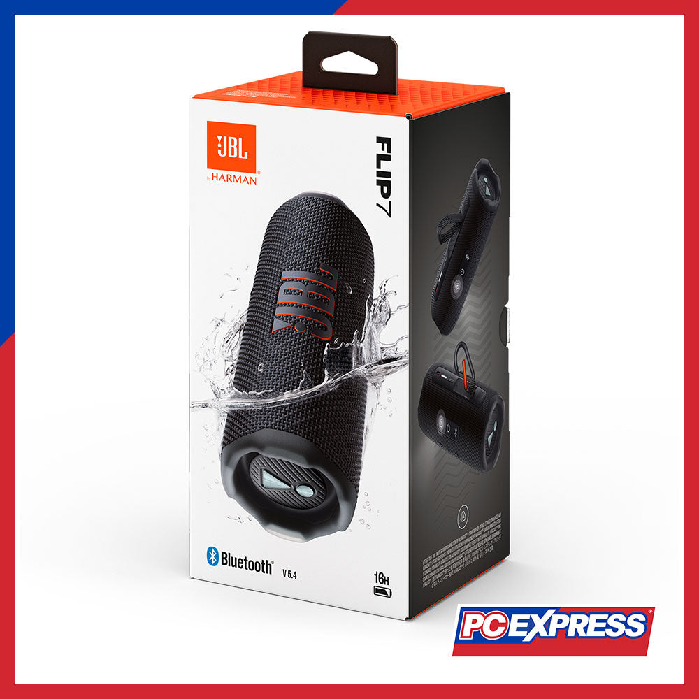 The soundtrack to our life, right in the palm of our hands. The JBL Flip 7 is undefeated JBL sound that travels with us wherever we go. Because music has no boundaries, and neither should we. Whether we're hosting a beach party, relaxing in our backyard, or setting the mood for a cozy night in, the Flip 7 is designed to enhance any experience, anywhere life takes us. And now, our signature sound is bigger and bolder than ever, thanks to JBL's AI Sound Boost. The end result? The Flip 7 leaves our friends and family wondering where all that big, glorious sound could possibly be coming from. But it's not just pretty and powerful. The Flip 7 takes a beating without missing a beat, boasting industry-leading IP68 waterproof, dustproof and drop-proof. Plus, with new Playtime Boost we can enjoy up to 16 hours of playtime—because the moment should only ever stop on our terms. Wouldn't it be great to share the sweet sound of JBL far and wide? Now we can. Effortlessly connect with other Auracast™ enabled JBL speakers to cover more ground (and more ears) with the same playlist, whether we're touring the town with our cycling crew or extending our dinner party to the back patio... and the front yard. In short, this is not the average portable speaker. It's a pint-sized audio boss.